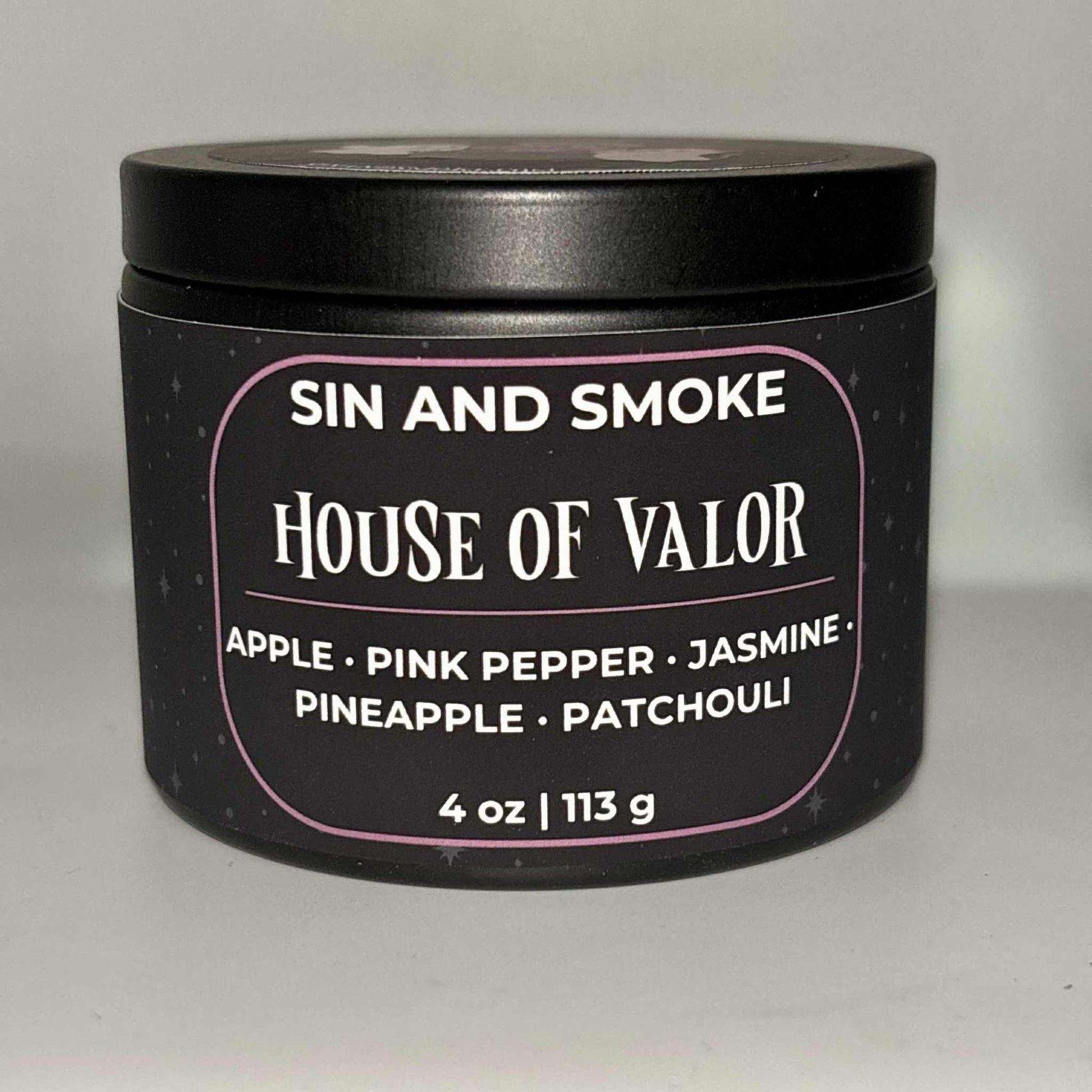 House of Valor is a confident, intoxicating blend that feels powerful, mysterious, and refined. Bright apple and juicy pineapple create a sharp, luminous opening, softened by the warm spice of pink pepper. A heart of jasmine adds elegance and depth, while earthy patchouli grounds the fragrance with a dark, velvety finish.